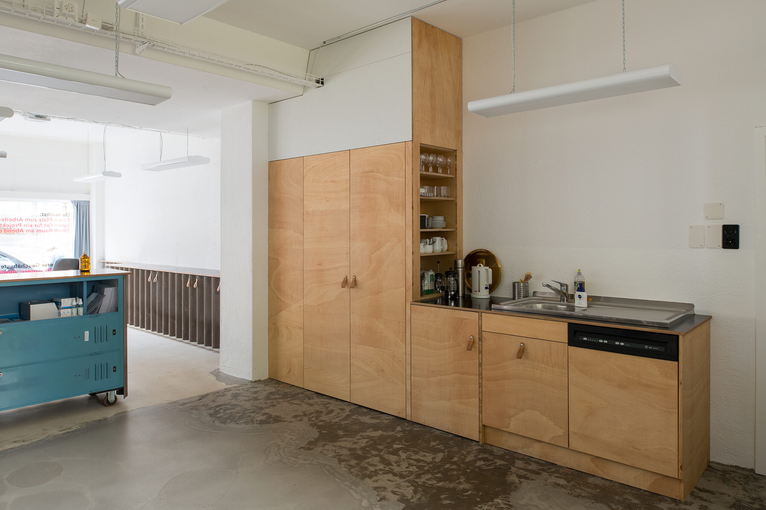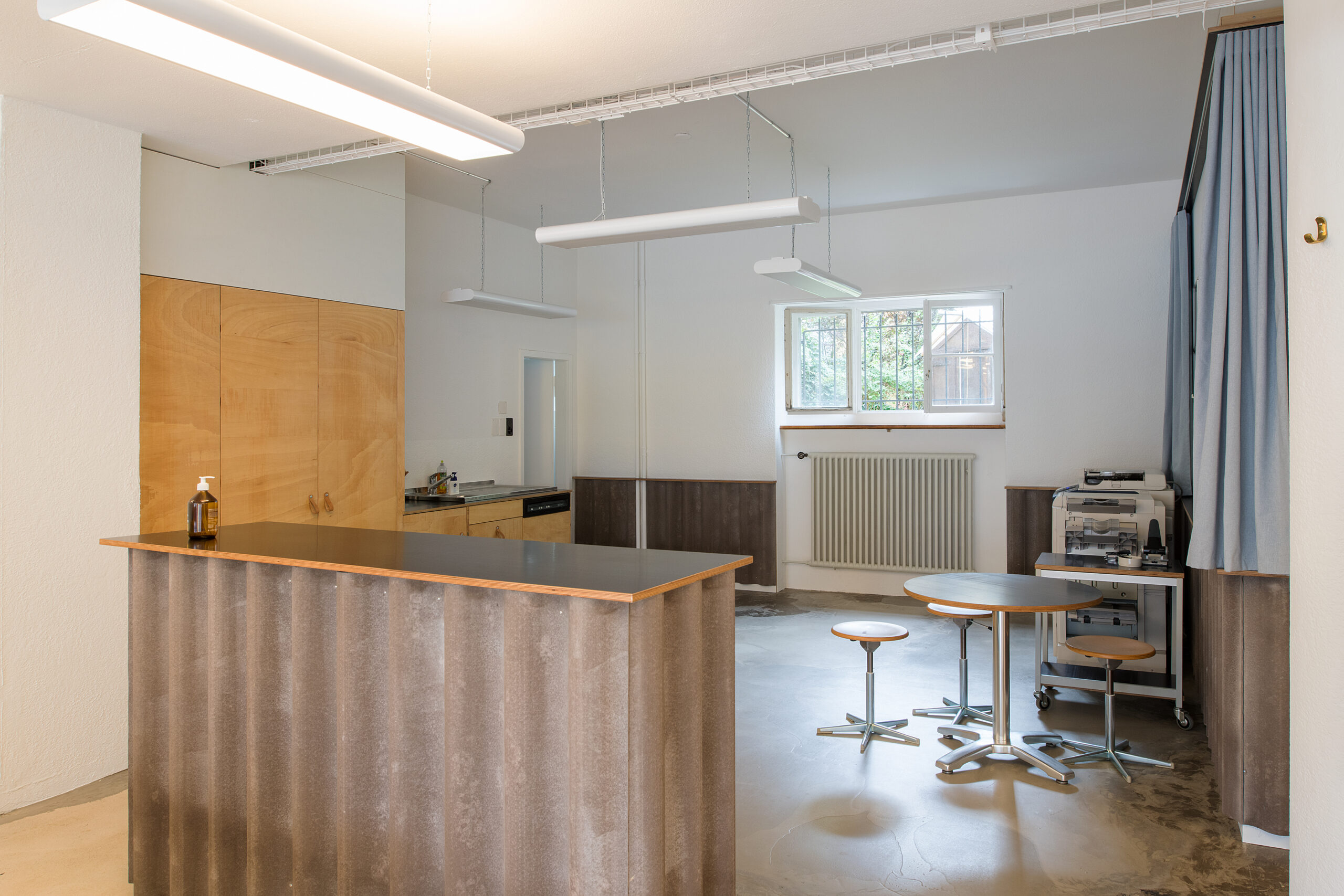 Ausbau der Geschäftsstelle mit wiederverwendeten Baumaterialien.